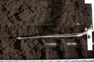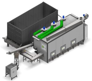 Der Schubboden dosiert den Schlamm in eine Trogschnecke, wo er mit rückgeführtem Trockenschlamm vermischt wird, um einen TS von 45 % zu erreichen. Anschließend gelangt das Material in die erste Trocknungskammer.